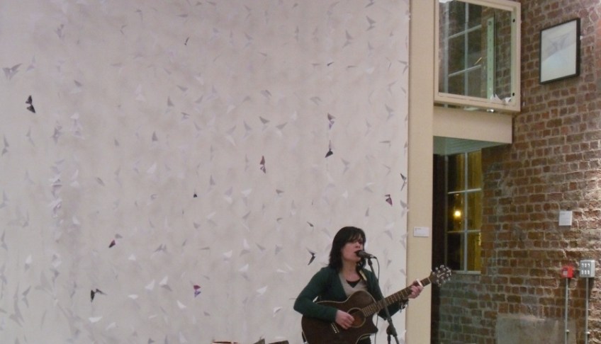 Artist working with paper and found objects