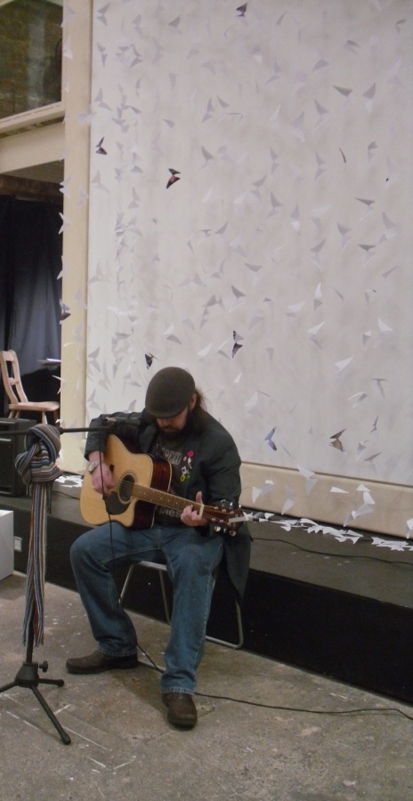 Artist working with paper and found objects