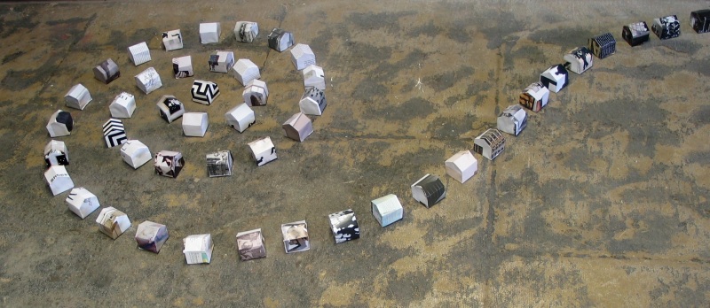 Artist working with paper and found objects