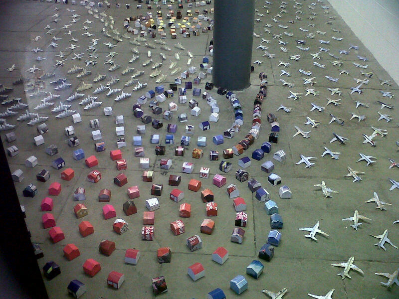 Artist working with paper and found objects