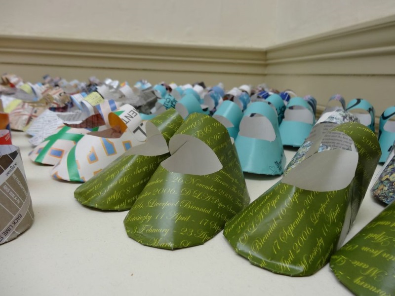 Artist working with paper and found objects