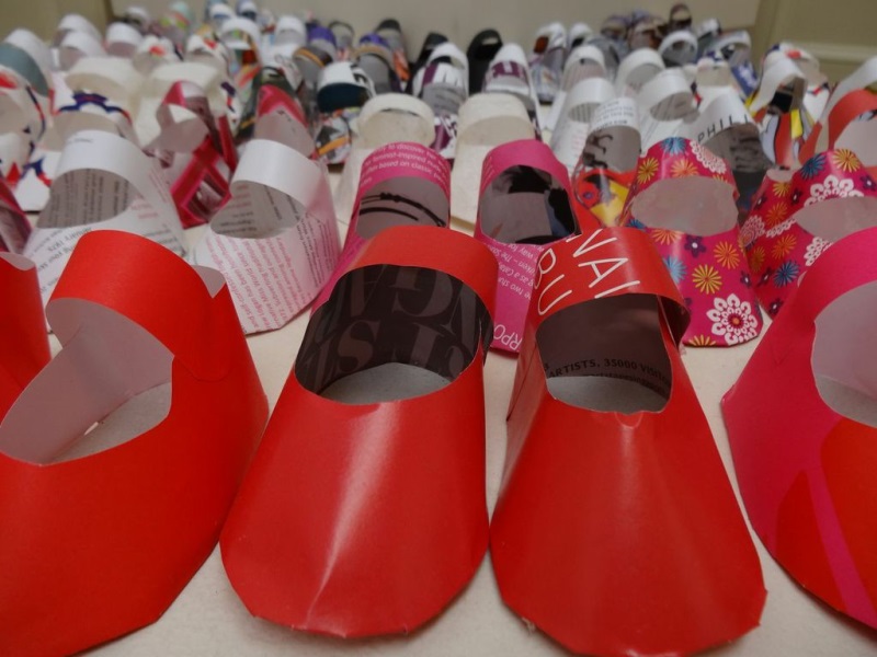Artist working with paper and found objects