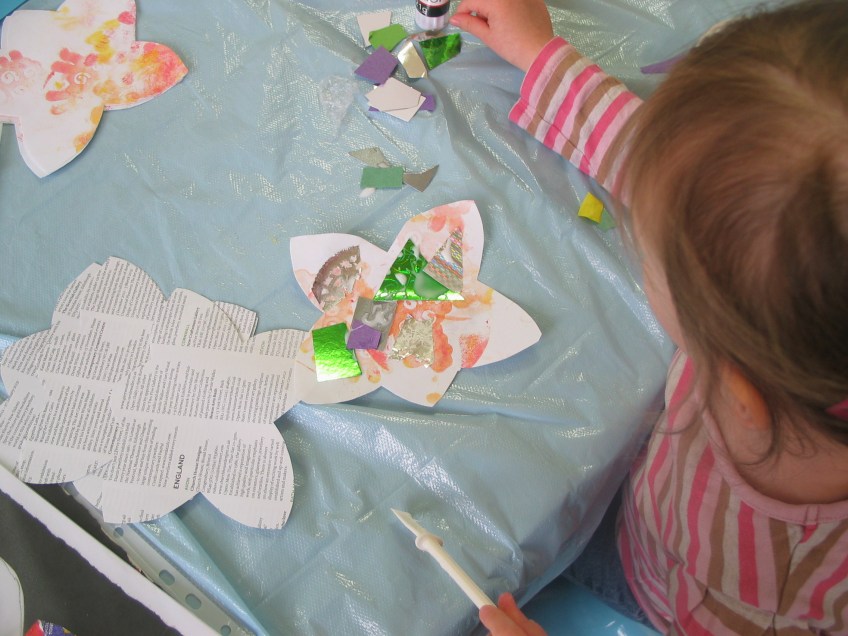 Artist working with paper and found objects