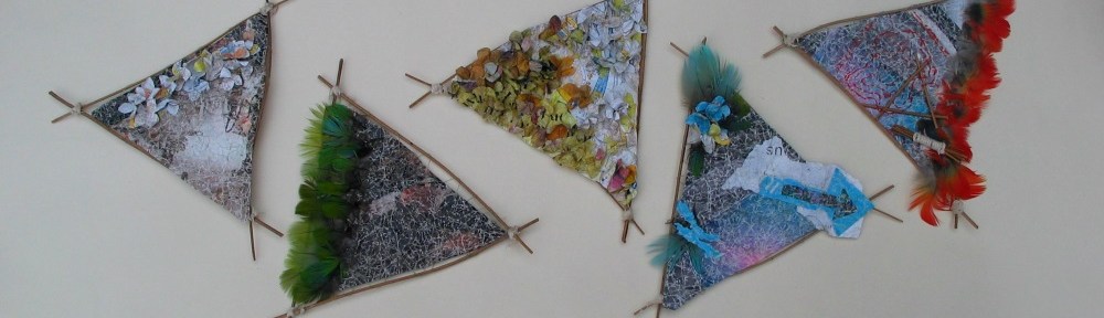 The triangular monuments are collages of what remains. Symbols on maps, fading flowers plant and animal life…