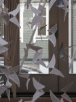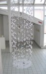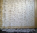 I work with recycled materials and especially like using paper as a medium. My most recent installation was shown at Threshold in April 2016 (see image below) but I’m constantly working on new ideas and exhibit regularly showing other works.