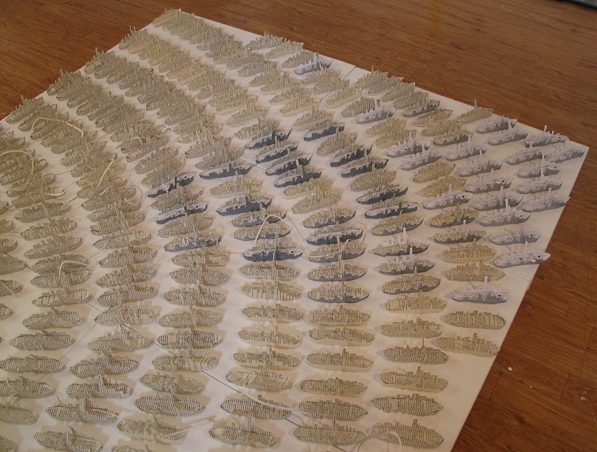 275 Paper ships, cut from the pages of the novel.